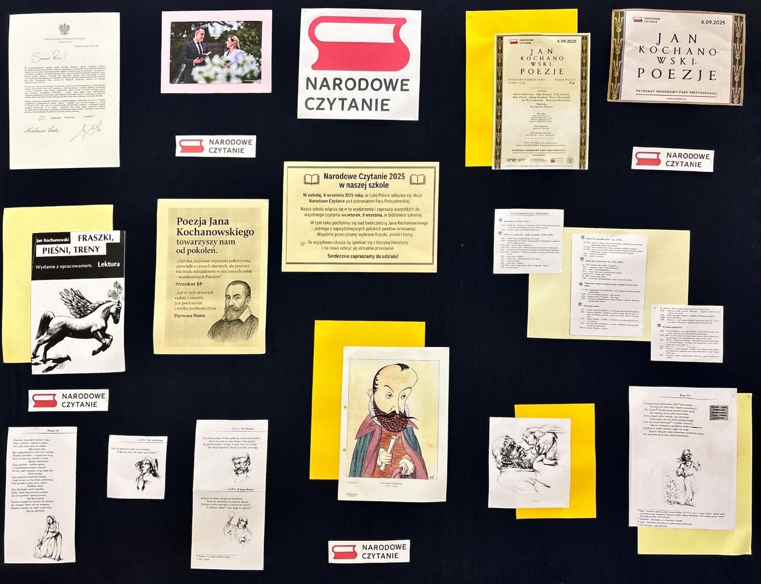 Dodatkowo w bibliotece szkolnej przygotowaliśmy wystawę książek z dziełami Kochanowskiego oraz tablicę informacyjną prezentującą jego życie i twórczość.