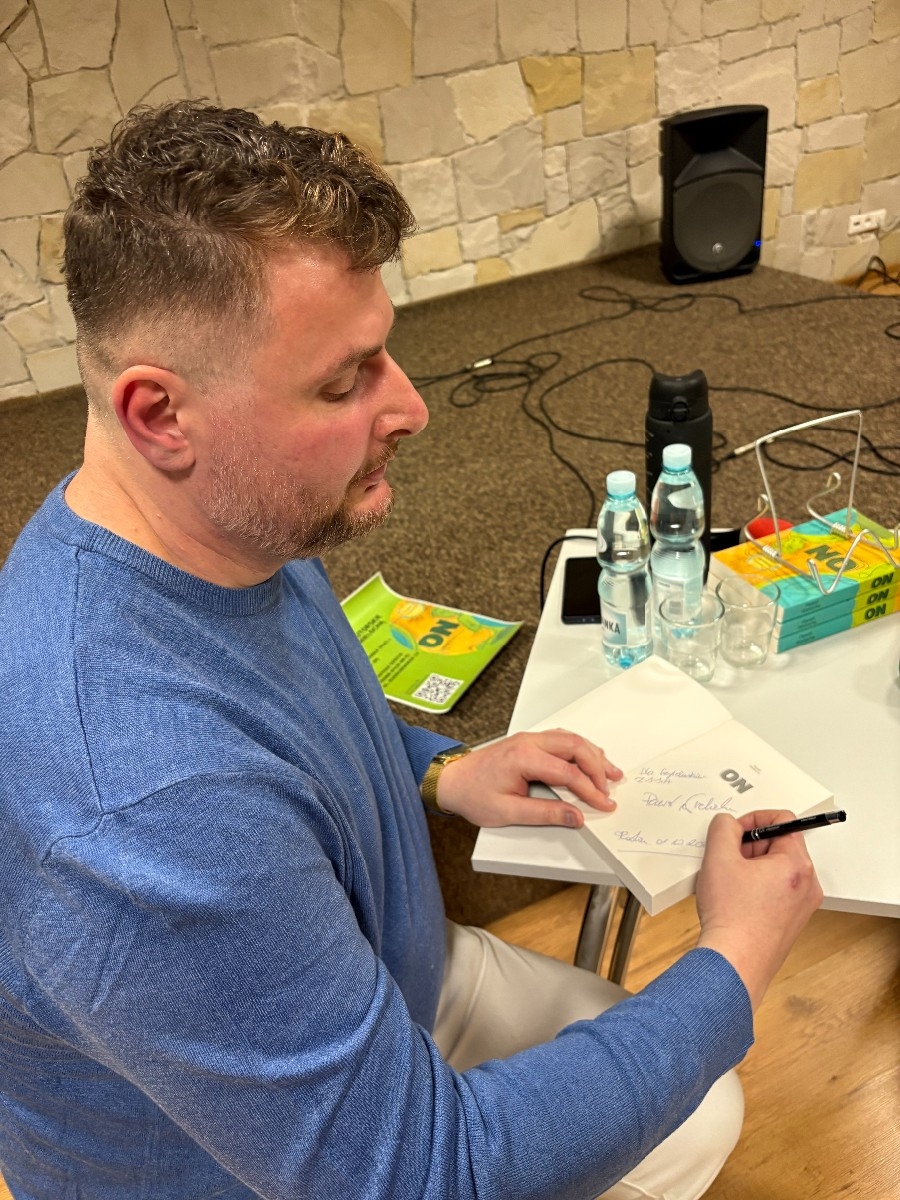 Pan Paweł zaprezentował swoją książkę pt. „ON”, opowiadając o procesie jej powstawania, inspiracjach oraz wyzwaniach związanych z pisarstwem. Była to niezwykła okazja do rozmowy z pisarzem, zadawania pytań i poznania kulis życia twórczego. Spotkanie przebiegło w atmosferze refleksji i literackiej pasji, a obecni czytelnicy z pewnością wynieśli z niego wiele cennych wrażeń.
