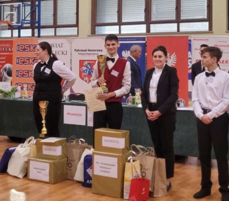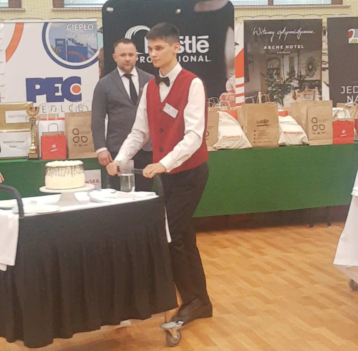 Konkurs obejmował test wiedzy oraz zadania praktyczne m.in. serwis napojów gazowanych, serwis przystawki oraz serwis tortu dla dwóch osób. W rywalizacji wzięło udział 20 uczniów szkół gastronomicznych i hotelarskich z różnych miast Polski. Mikołajowi gratulujemy, życzymy dalszych sukcesów, a uczniów naszej szkoły zachęcamy do rozwijania swoich zainteresowań zawodowych.