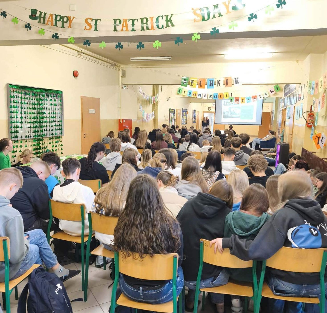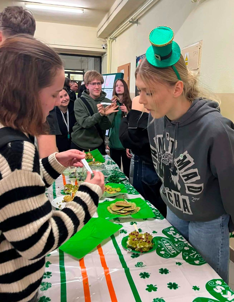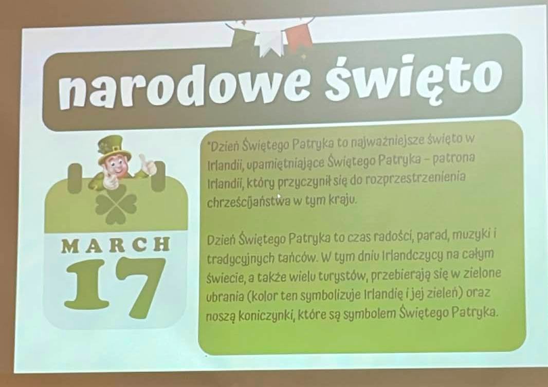 Podczas obchodów mogliśmy usłyszeć tradycyjną muzykę irlandzką, spróbować zielonych przysmaków oraz poznać wiele ciekawostek o Irlandii i samym Świętym Patryku. Nie zabrakło też inspirujących historii – m.in. o tym, gdzie co roku rzeka barwiona jest na zielono! 💚