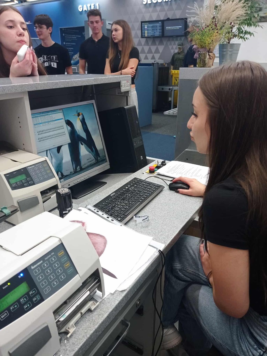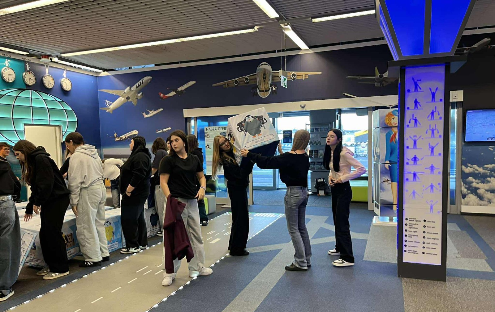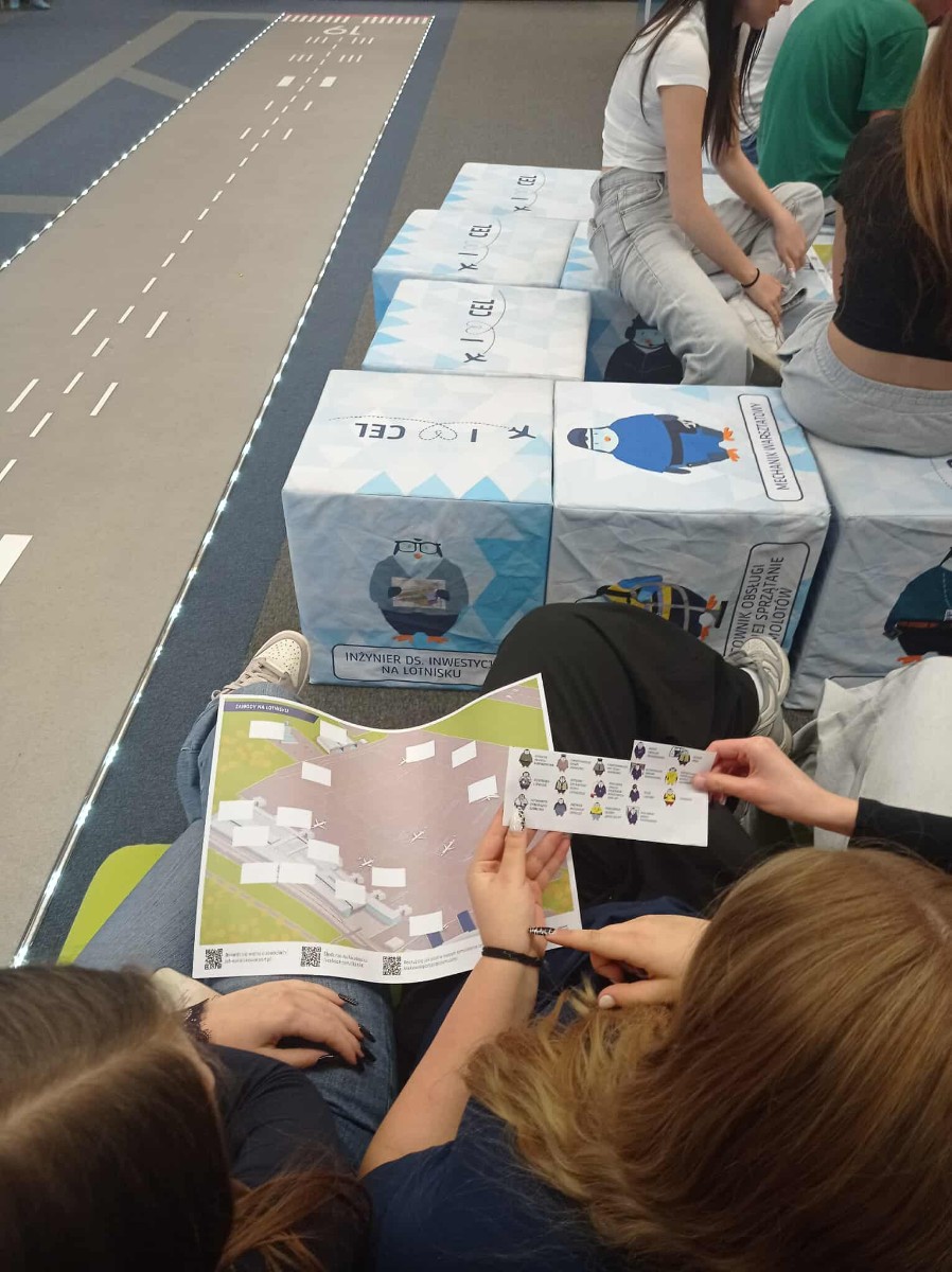 Wzięliśmy udział w zajęciach „Zawody na lotnisku” 💁♀️🧑💼🧑✈️👷♂️🧍♂️🔦🔦✈️, podczas których dowiedzieliśmy się, jak wygląda praca różnych służb lotniskowych – od pilotów i kontrolerów ruchu lotniczego po obsługę techniczną. Zobaczyliśmy też nowoczesną infrastrukturę lotniska!