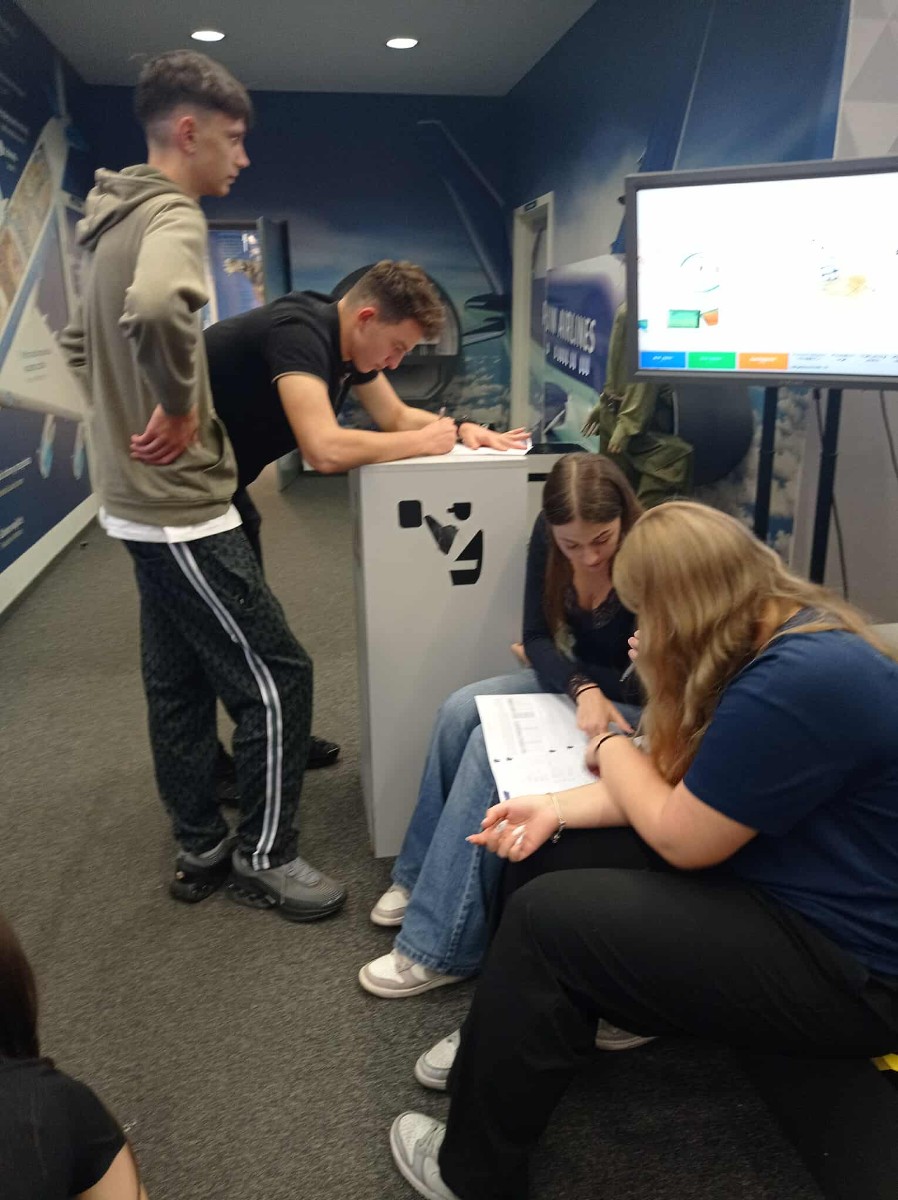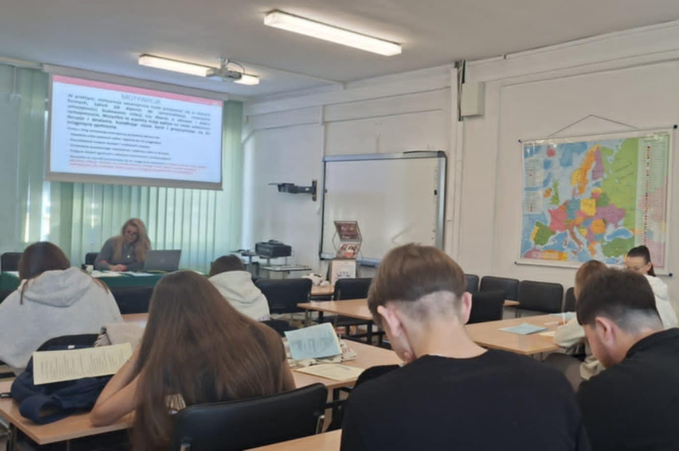 We wrześniu i październiku 2025 roku uczniowie klas maturalnych brali udział w warsztatach prowadzonych przez specjalistów z Wojewódzkiego Urzędu Pracy w Warszawie, Filia w Radomiu. Poznawali strukturę tej instytucji i dowiedzieli się, gdzie szukać pomocy w razie wątpliwości związanych z rynkiem pracy. Otrzymali wskazówki, jak szukać zatrudnienia i jak ominąć związane z tym pułapki. Mieli okazję poznać sposoby radzenia sobie ze stresem oraz odkryć możliwości uczestnictwa w programie EURES.