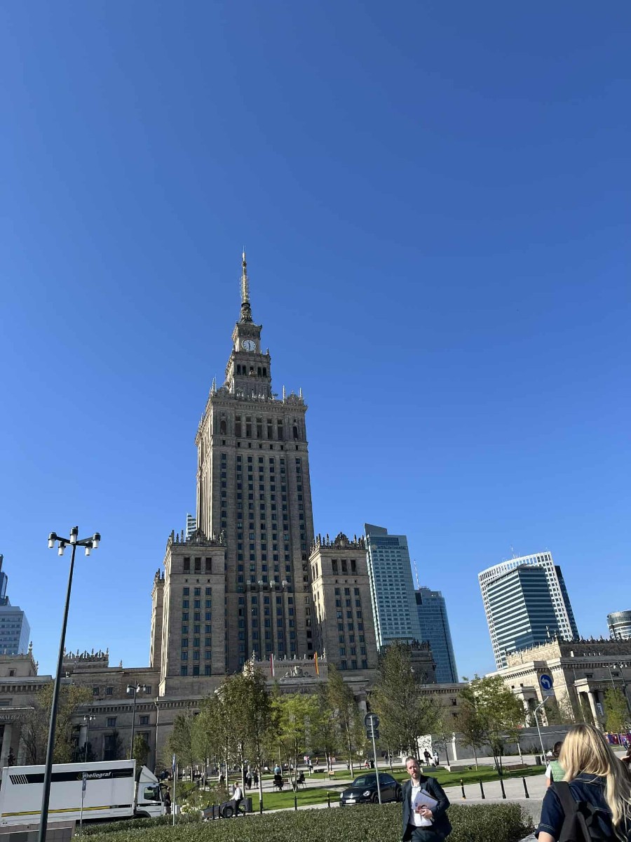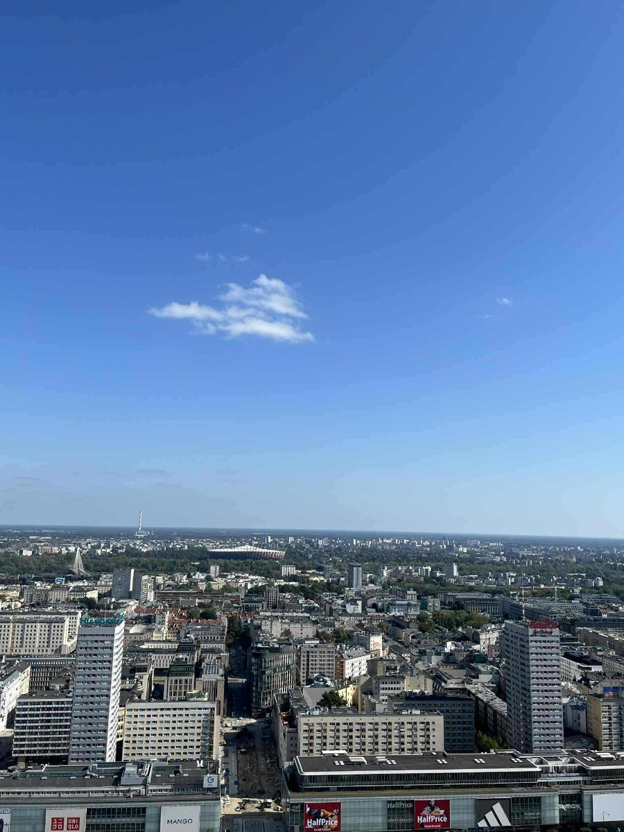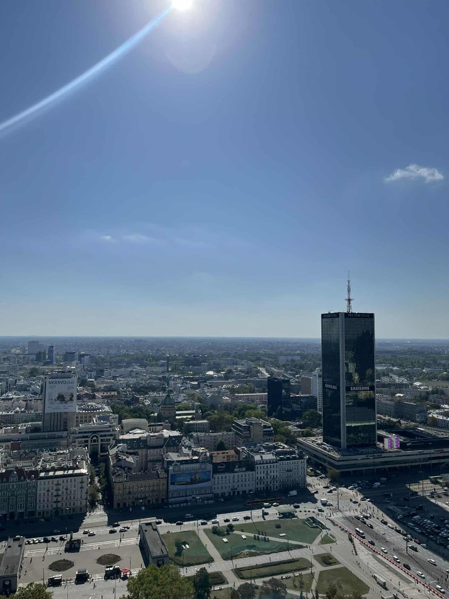 Następnie udaliśmy się do Pałacu Kultury i Nauki, gdzie wjechaliśmy na taras widokowy. Mogliśmy podziwiać przepiękną panoramę Warszawy.