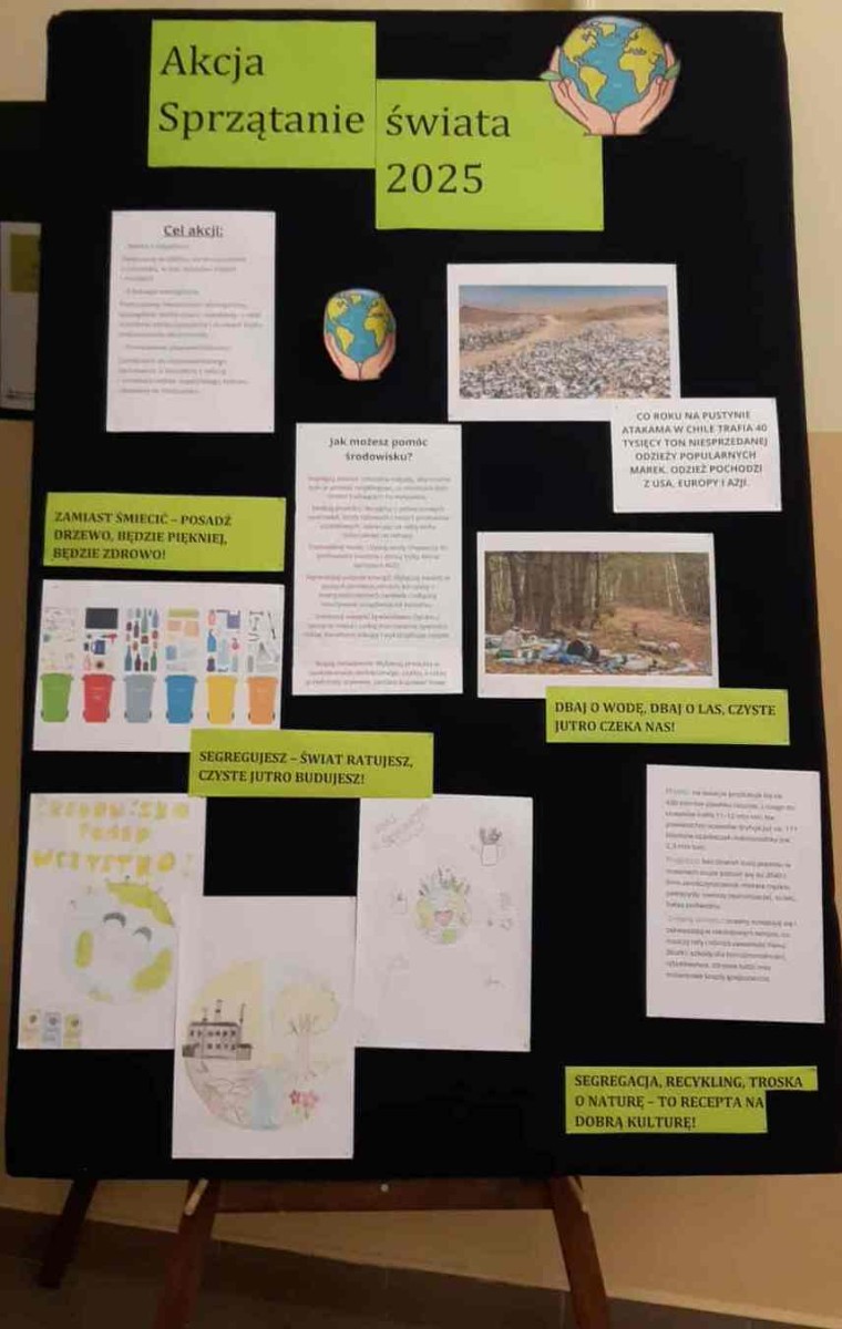 Sprzątanie świata to coroczna akcja ekologiczna, której celem jest zwrócenie uwagi na problem zaśmiecania środowiska oraz zachęcenie ludzi do dbania o czystość naszej planety. W Polsce odbywa się ona zazwyczaj we wrześniu i jest częścią międzynarodowej kampanii "Clean Up the World", zapoczątkowanej w 1993 roku.