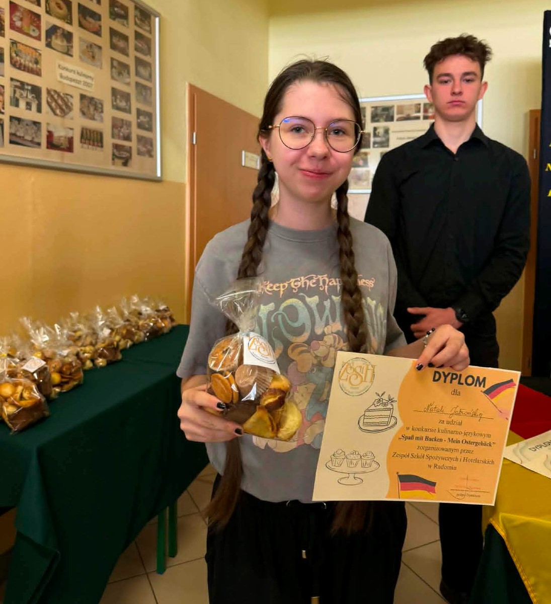 W dniach 27-28 marca 2026 r. odbył się konkurs na Mazurka Wielkanocnego, którego celem było pielęgnowanie polskich tradycji wielkanocnych oraz rozwijanie pasji kulinarnych wśród uczniów. Uczniowie zaprezentowali wykonane i udekorowane przez siebie wypieki, które charakteryzowała kreatywność, oryginalność oraz staranność wykonania.